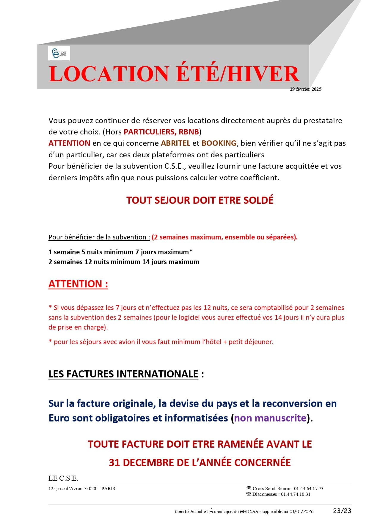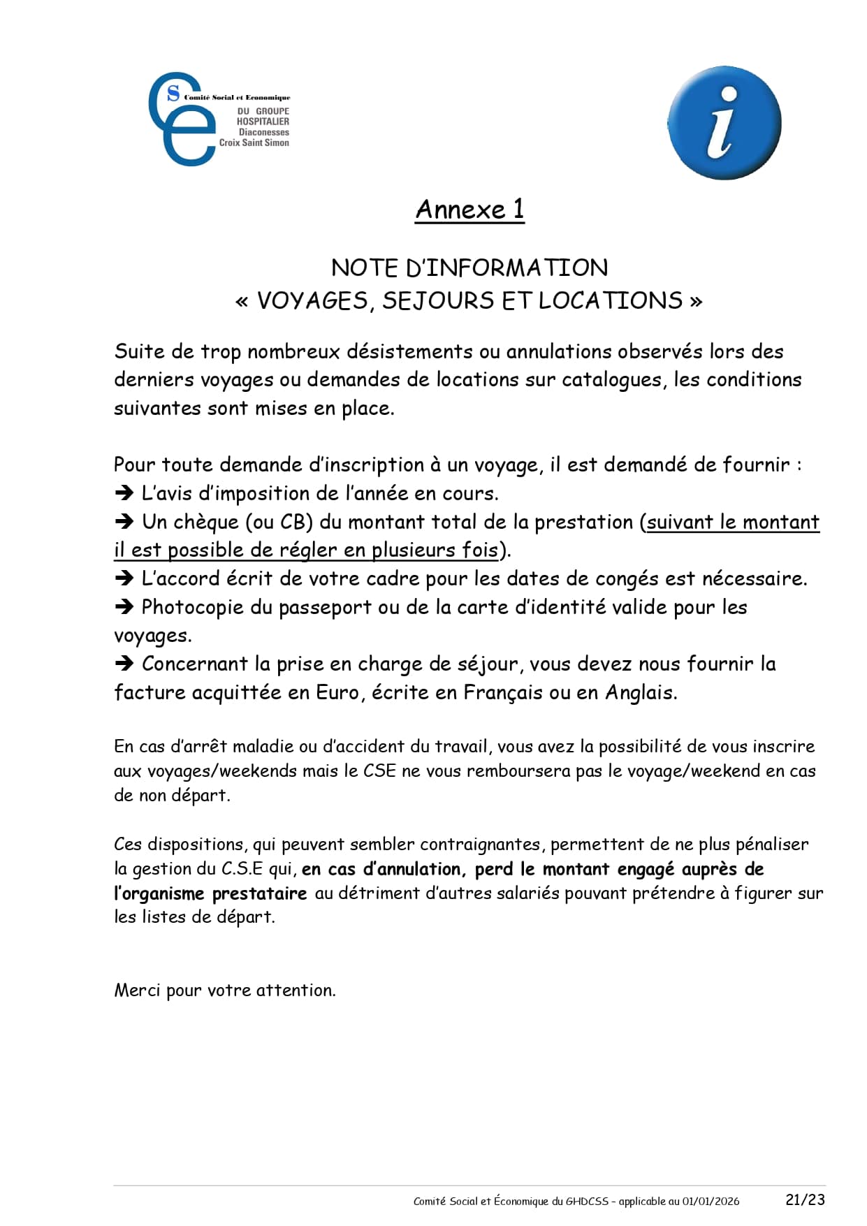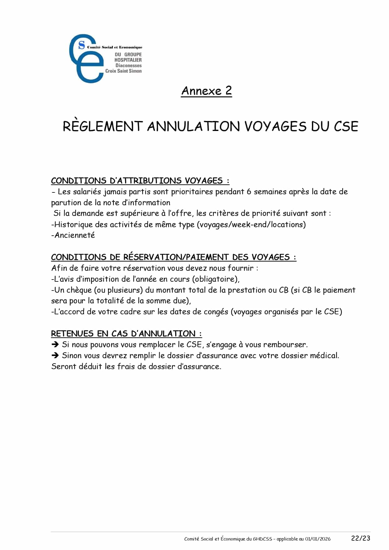 Règlement annulation voyages du CSE